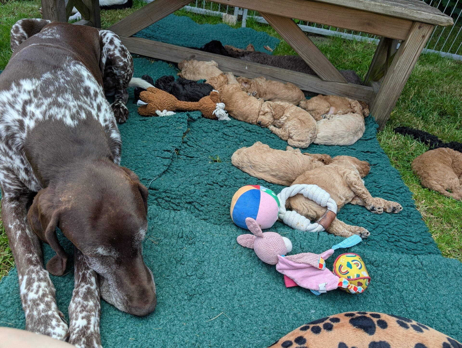 Dexter war total charmant und liebevoll mit Blini. Ich bin immer wieder begeistert von den Pudelrüden, da gibt es nichts aufdringliches oder ungeduldiges.